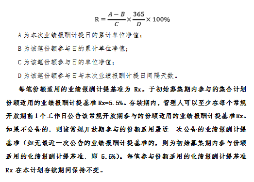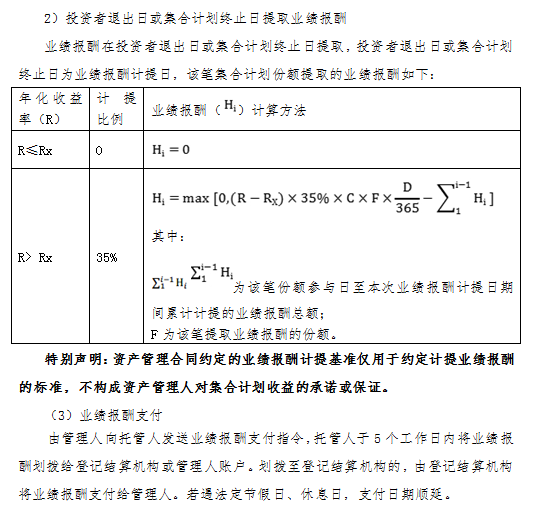 本計劃每筆份額參與后,需滿足18個月持有期(紅利再投份額除外,下同),方可在產(chǎn)品開放期退出。其中,18個月持有期起始日指集合計劃成立日(對認(rèn)購份額而言,下同)或該筆份額申購申請日(對申購份額而言,下同),18個月持有期到期日指該筆份額的18個月持有期起始日滿18個月的月度對日。該筆份額18個月持有期到期日的次一工作日起投資者可在產(chǎn)品開放期提交該筆份額的退出申請,18個月持有期內(nèi),該筆份額不可辦理退出(按合同約定設(shè)置的臨時開放期除外)。