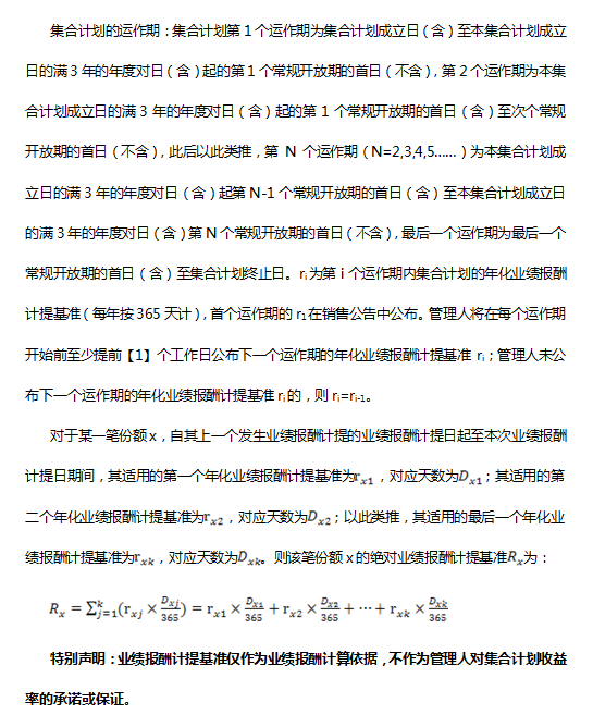 | 產(chǎn)品存續(xù)期 | 本計劃存續(xù)期為10年,自本計劃成立日起至成立后滿10年的年度對日止(含),符合法律法規(guī)規(guī)定及本合同約定條件后可展期。本計劃提前結(jié)束的,存續(xù)期提前屆滿。 |